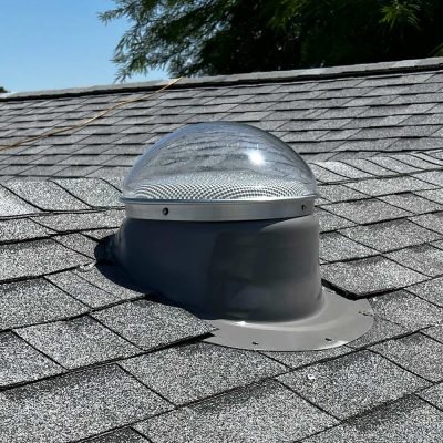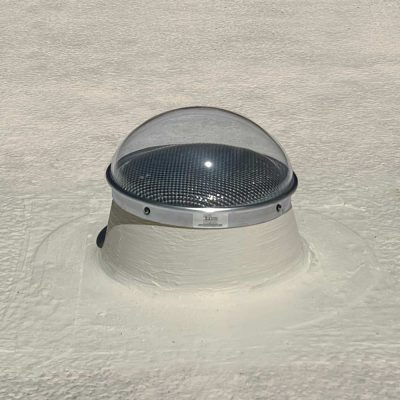 - DOME ASSEMBLY – High Impact Acrylic Dome with UV Stabilizers locked onto an Aluminum Ring (Will not yellow, withstands hailstorms & high velocity zones)